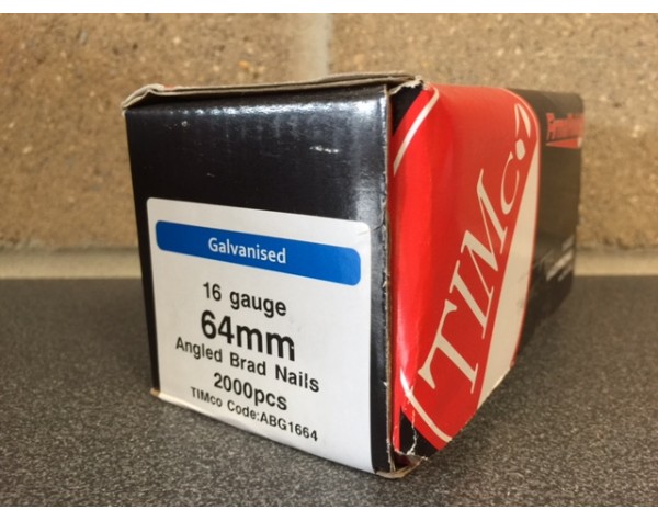 High Quality Brads galvanised angled 16 gauge/64mm (per2000)