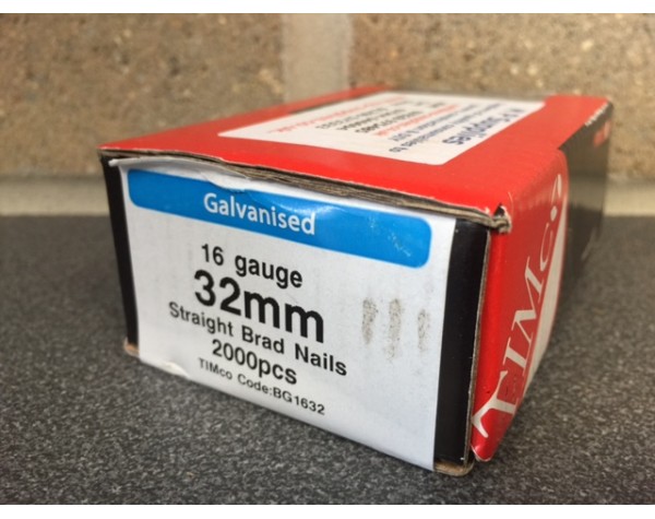 Brads galvanised straight 16 gauge/32mm (per2000)