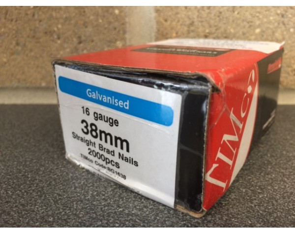 Brads galvanised straight 16 gauge/38mm (per2000)