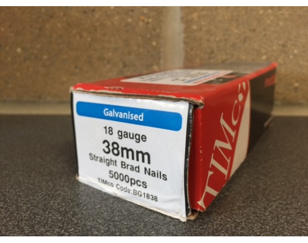 Brads galvanised straight 18 gauge/38mm (per5000)