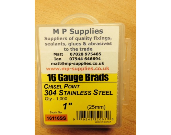 Brads ST/ST 16 gauge / 25mm (box 1000)