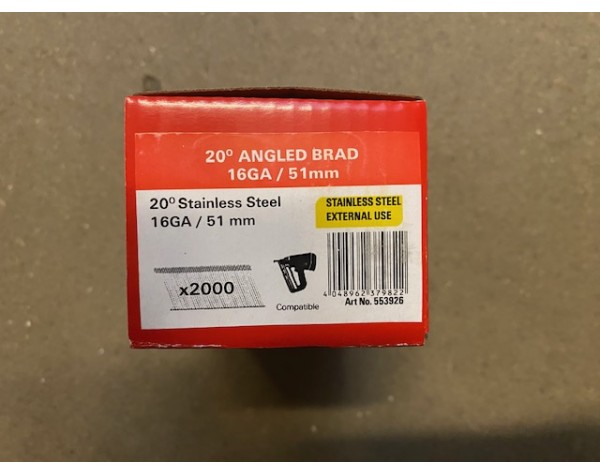 Suitable for use in cordless and pneumatic 16 gauge second fix brad nailers.