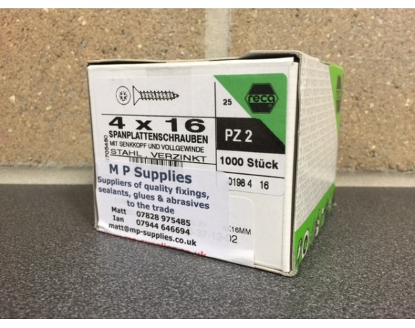 Screw zinc plated c/sunk pozi 4x16mm (per 1000)