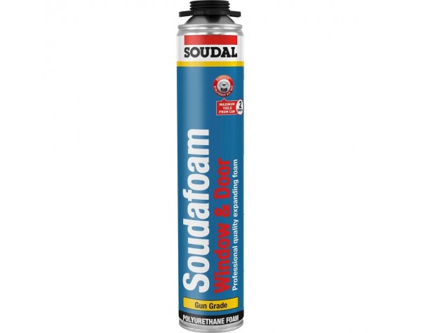 Directions for use: Attach to an applicator gun by screwing clockwise to the top of the canister. Shake canister for at least 30 seconds. Moisten the surfaces to be filled with a fine mist of water to improve curing time and cell structure. Adjust the set screw on the gun and apply the foam by pulling the trigger, starting slowly. Gaps should filled partly, since foam will continue to expand after application. Uncured excess foam can be removed with Soudal Gun Foam Cleaner. Once cured foam can only be removed mechanically or by using Soudafoa Cured PU Remover. After use store the canister with gun attached, without risk of hardening. If no new canister is to be fixed on the spray gun after use, clean the gun thoroughly with Soudal Gun Foam Cleaner. Application temperature: +5°c to +35°c.